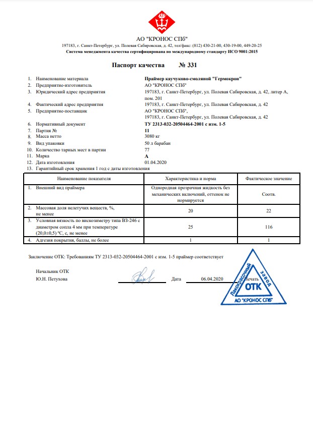 Только паспорт может подтвердить подлинность продукта. Выдается с каждой поставкой