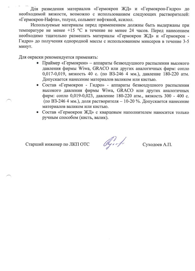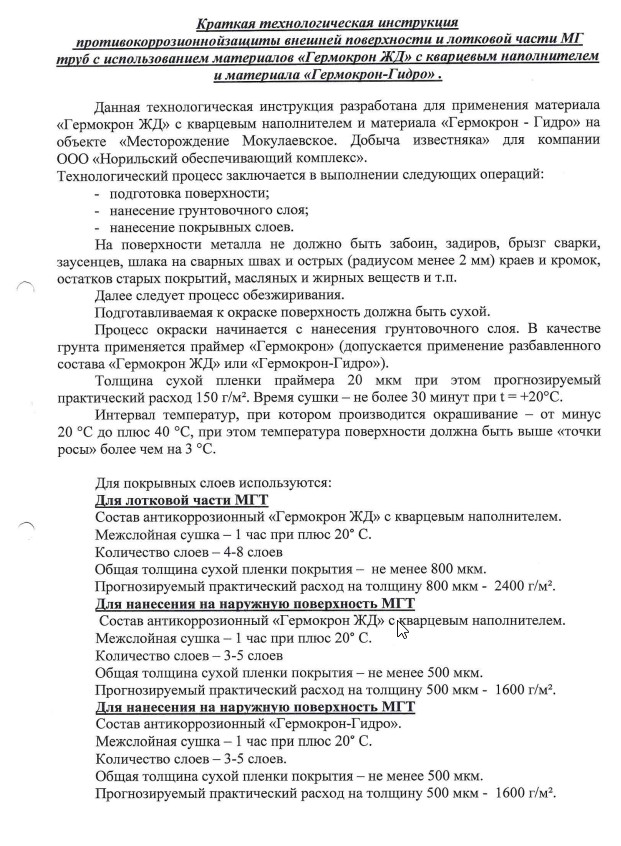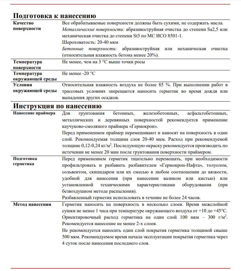 Инструкция по нанесению ГЕРМЕТИКА АНТИКОРРОЗИОННОГО "ГЕРМОКРОН ГИДРО"